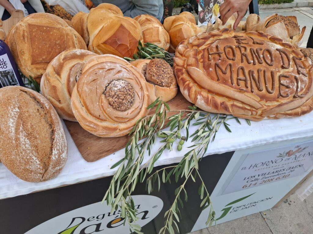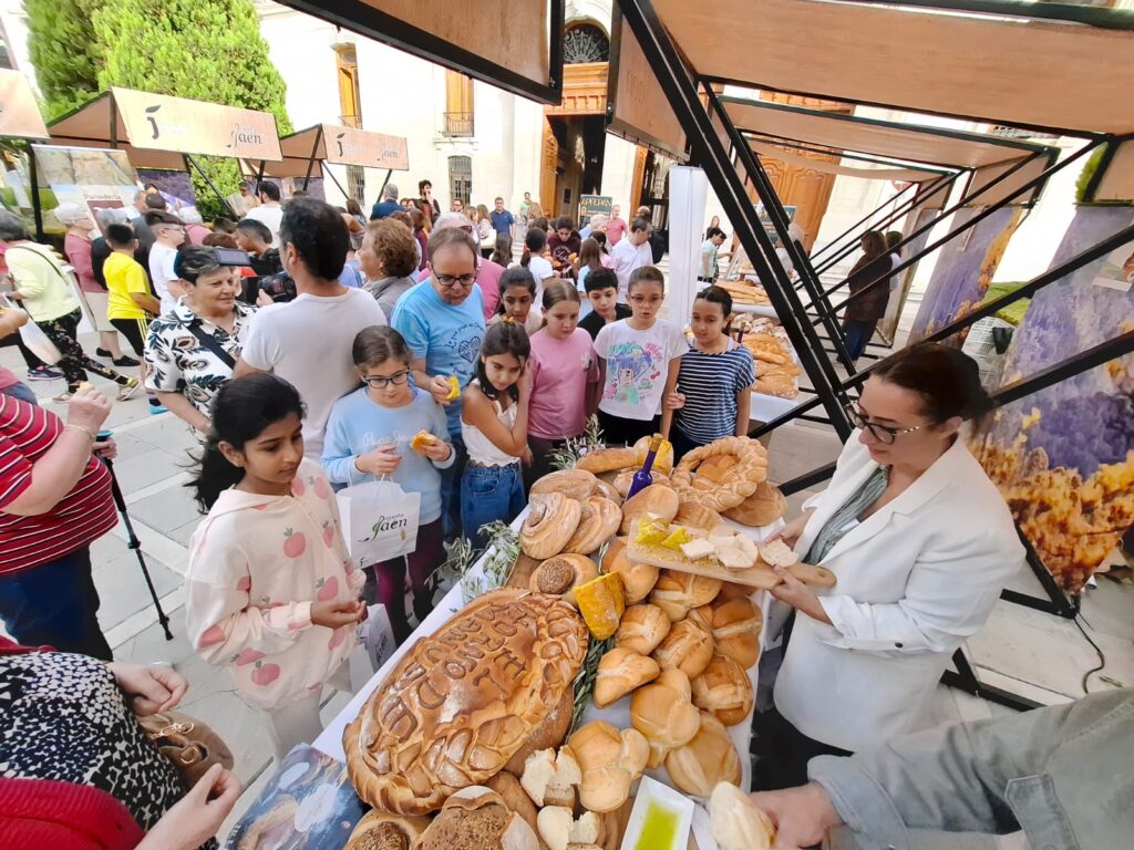 En total, el Palacio Provincial ha albergado siete estands de panaderías procedentes de la capital, Cazorla, Baeza, Los Villares, Martos y Linares, donde se han expuesto distintas clases de pan y dulces, que los viandantes han podido degustar acompañados de aceite de oliva virgen extra. De igual forma, esta muestra ha contado con una clase magistral realizada por la maestra artesana María Perales (Panadería Félix de Baeza), en la que han tomado parte los alumnos y alumnas de 5º y 6º Primaria del Colegio Alcalá Venceslada de la capital.