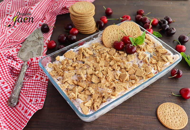 Tarta de galletas y cerezas