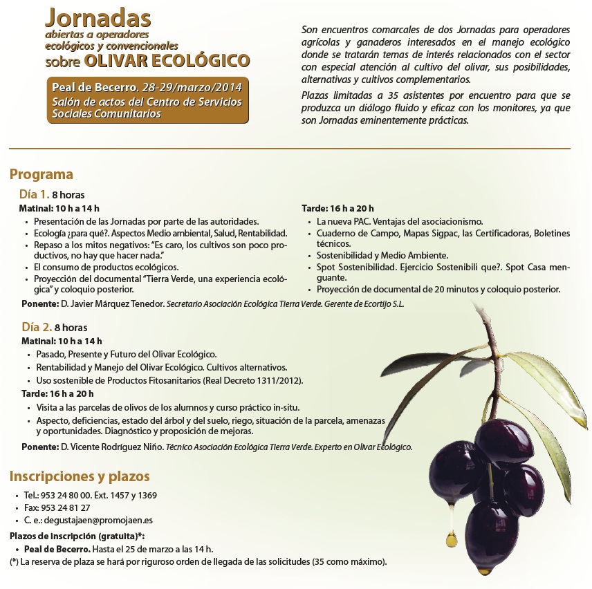 El 28 y 29 de marzo se celebrarán unas jornadas abiertas a operadores agrícolas y ganaderos interesados en el manejo ecológico del cultivo del olivar. A lo largo del programa se abordarán temas de interés para el sector, con especial atención al cultivo del olivar, sus posibilidades, alternativas y cultivos complementarios. Inscripción hasta el 25[…]