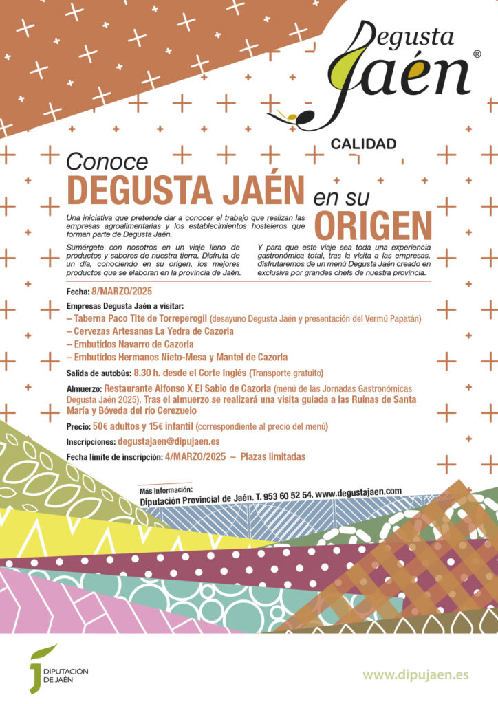 Una iniciativa que nace para dar a conocer el trabajo que realizan las empresas agroalimentarias y los establecimientos hosteleros que forman parte de Degusta Jaén. Sumérgete en un viaje lleno de sabores de nuestra tierra. En cada jornada podrás conocer in situ y de primera mano cómo se elaboran de forma artesanal esos excelentes productos, para degustarlos finalmente en un almuerzo preparado por uno de los restaurantes distinguidos con la marca Degusta Jaén Oro.