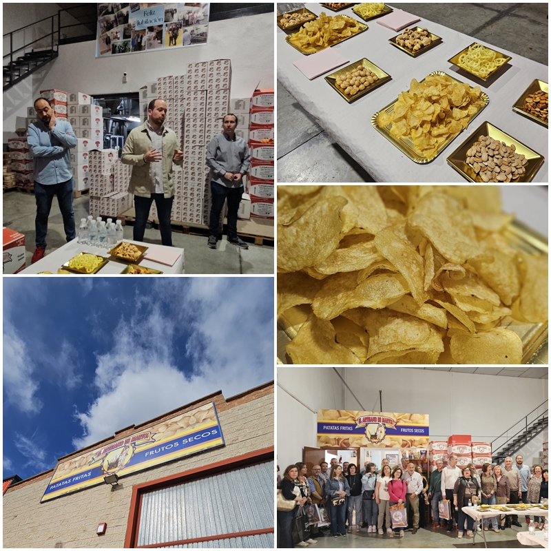 Su producto estrella son las patatas fritas en aceite de oliva y los frutos secos, aunque comercializan muchos más productos. Pudimos conocer las instalaciones de la empresa y probar muchos de sus productos.