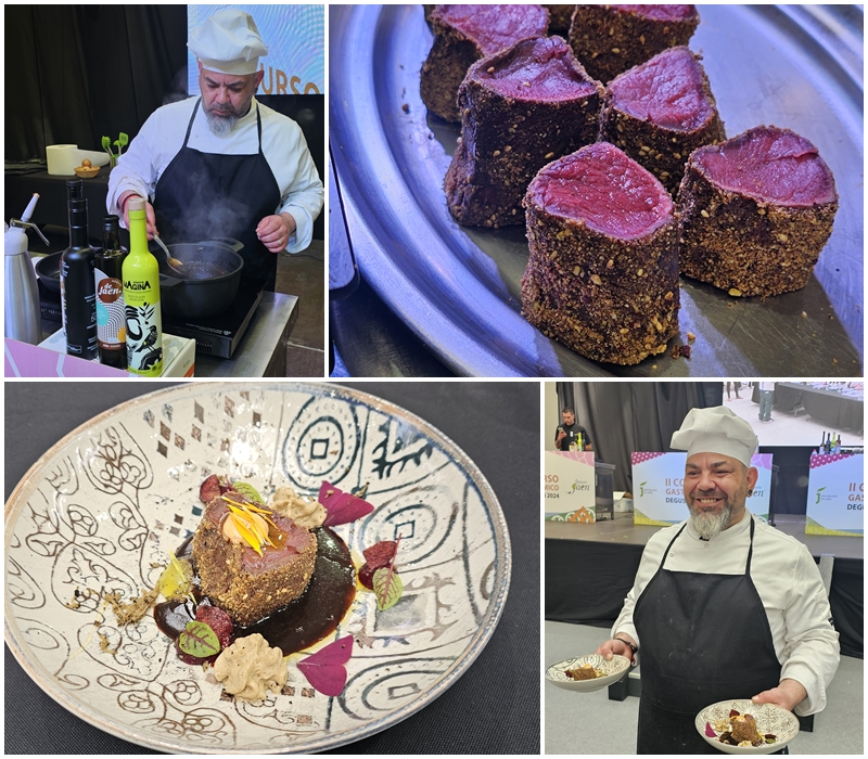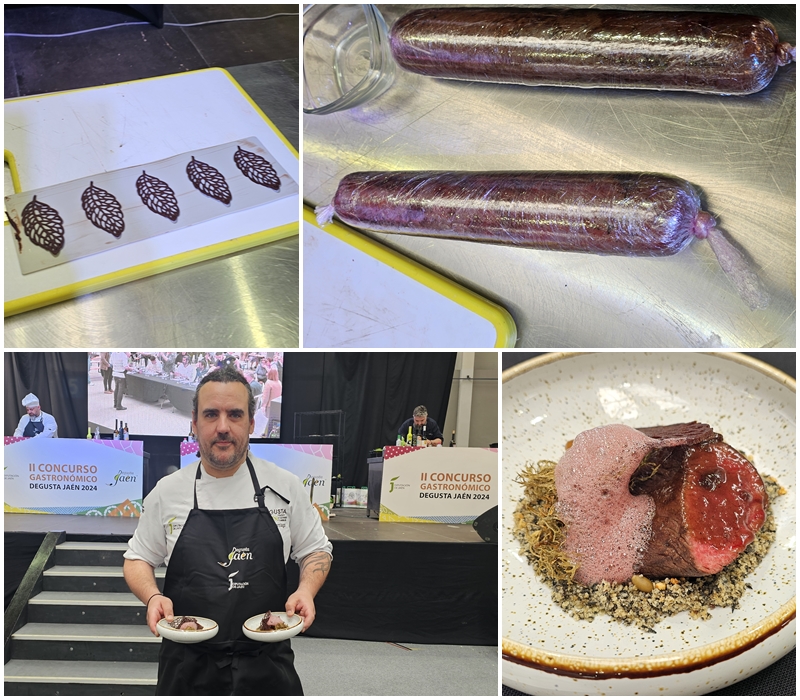 Durante esta prueba, que se ha desarrollado a lo largo de dos horas, dinamizada por el cocinero, Enrique Sánchez, del programa Cómetelo, de Canal Sur, estos cuatro cocineros han tenido que realizar en directo sus respectivas elaboraciones, para lo que han utilizado productos agroalimentarios “Degusta Jaén”, que les han sido facilitados en una caja sorpresa antes del inicio de esta prueba, entre los que la carne de caza ha sido el ingrediente principal. Esta caja también ha incluido mermelada de aceite de oliva virgen extra, miel, sal ecológica de manantial, garbanzos, verduras ecológicas de Aprompsi, tomillo endémico de la Sierra de Jaén de aromas, garrapiñados de sésamo y de pistacho, además de AOVE de la IGP Aceite de Jaén y de las denominaciones de origen Sierra de Cazorla, Sierra de Segura y Sierra Mágina.