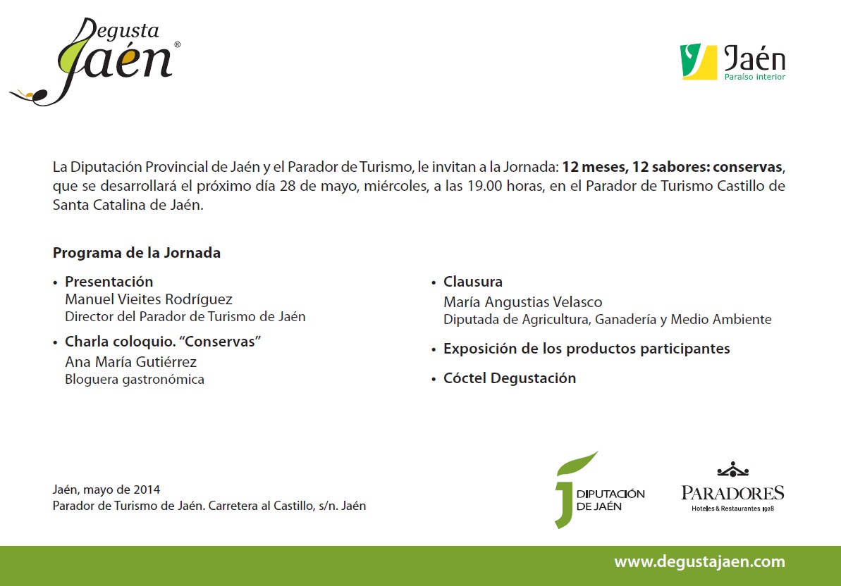 El miércoles 28 se celebra en el Parador de Jaén una jornada dedicada a las «Conservas» enmarcada en el Proyecto «12 meses, 12 sabores».