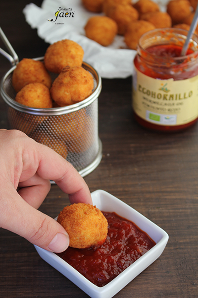 Bolitas de patata y merluza con mermelada de pimiento, una idea estupenda para las cenas, sobre todo de los peques, porque ahora con la vuelta al Cole comienzan la rutina y con esta las cenas y no sé a vosotros, pero a nosotros a veces nos faltan ideas, pero con estas bolitas veréis que bien se comen el pescado, pero es que también son un aperitivo perfecto para compartir con amigos ¡no quedará ninguna! y es que son muy suaves por dentro y muy crujientes por fuera, el toque especial se lo dará la mermelada de pimiento rojo, una mermelada que cuenta con el distintivo Degusta Jaén Calidad Eco. Como siempre os decimos, cuando veáis un producto con la marca Degusta Jaén no dudéis en llevároslo a casa, por un lado os aseguráis que es un producto excelente elaborado en la provincia de Jaén y por otro lado, ayudáis a generar y consolidar empleo en nuestros municipios.