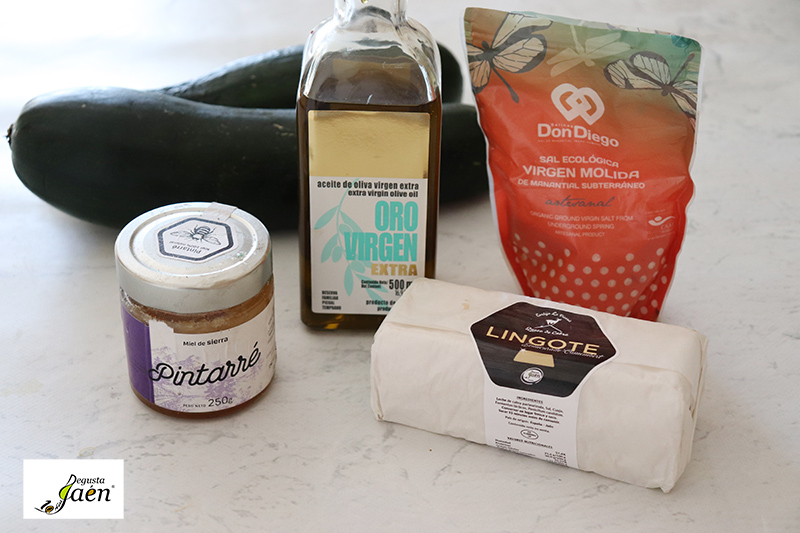 Esta semana os proponemos preparar unas riquísimas Brochetas de calabacín con queso de cabra Lingote de la Quesería Cortijo La Vicaría de Puente de Génave, un poco de aceite de oliva virgen extra Oro Virgen de Cazorla, sal virgen ecológica de manantial de Salinas Don Diego y miel de sierra ecológica de Pintarré, estas dos últimas empresas de Mancha Real.
