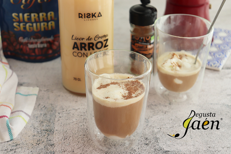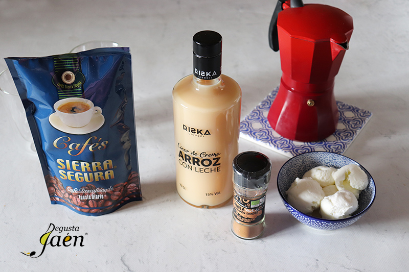 Nosotros lo hemos elaborado con productos que cuentan con la marca Degusta Jaén Calidad, un distintivo a nivel nacional y europeo que indica al consumidor que estamos ante un producto excelente que se ha elaborado en la provincia de Jaén, así hemos utilizado café de Cafés Sierra Segura de Puente de Génave, licor de arroz con leche de Licores Riska de Andújar,  helado de nata de La Cremería de Jaén y canela molida de Andunatura de Andújar.