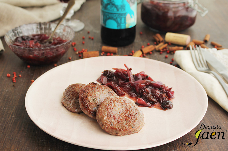 Receta de Chutney de cebolla roja al vino tinto con hamburguesas de ciervo Degusta Jaén