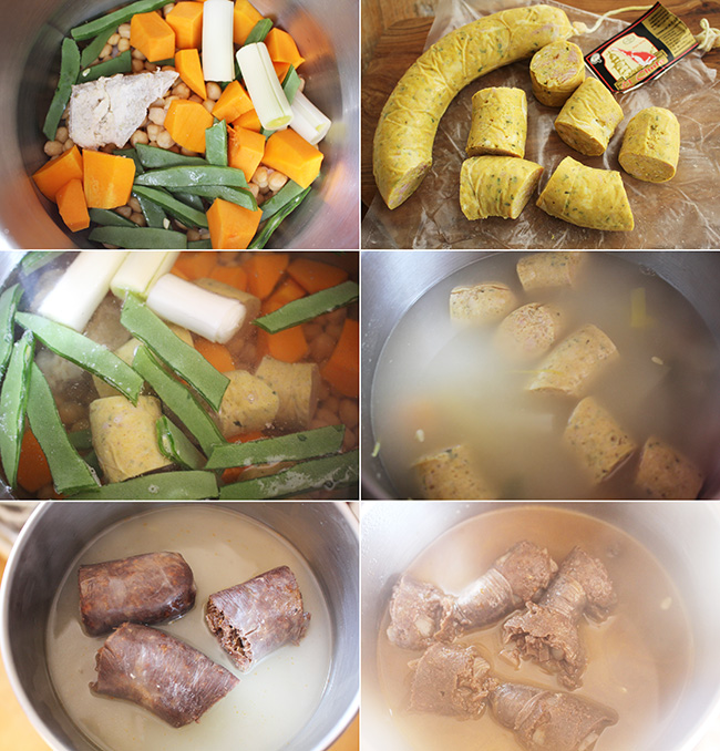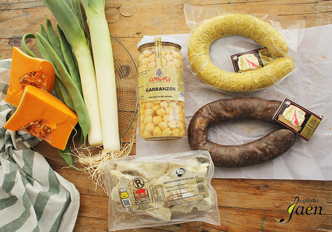 Utilizaremos también para elaborar este cocido garbanzos cocidos de Conservas Congana y hueso de canilla con sal de Embutidos Ruano. A continuación os dejamos con la receta de Cocido con relleno de carnaval y morcilla Degusta Jaén.