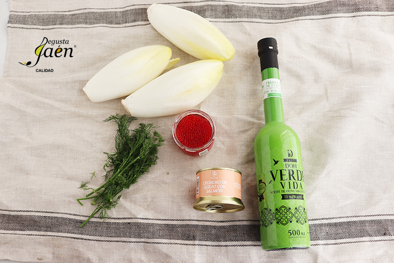 Receta de Endivias con cremoso de salmón y "aove" Degusta Jaén