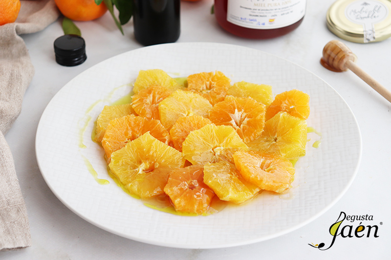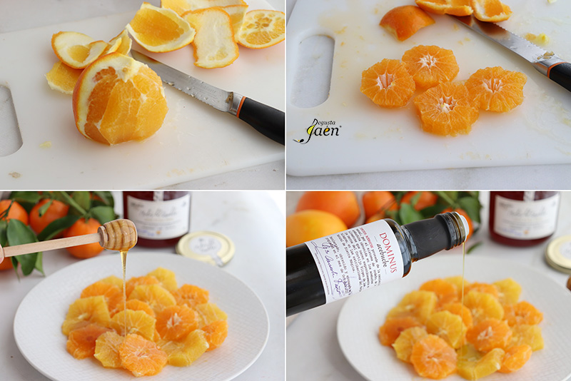 Receta de Ensalada de naranjas y mandarinas con miel y "aove" Degusta Jaén.
