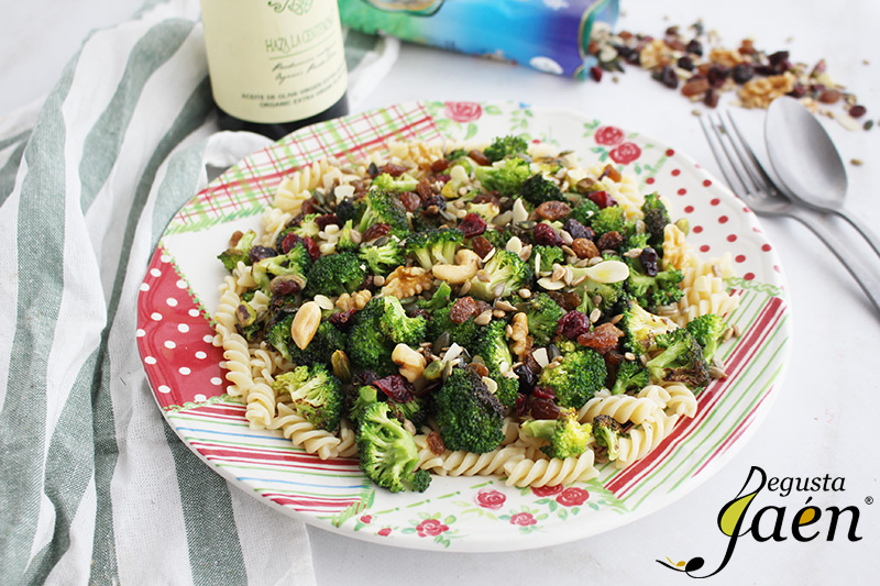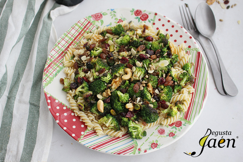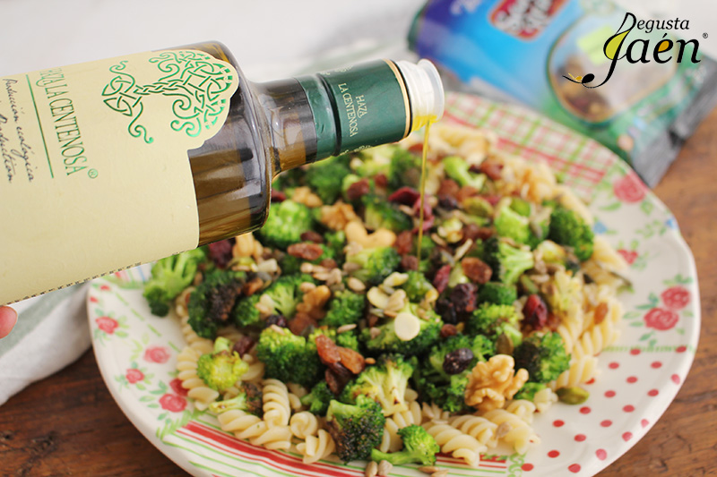A continuación os explicamos cómo hacer una Ensalada de pasta con brócoli, frutos secos y aceite de oliva virgen extra Degusta Jaén.