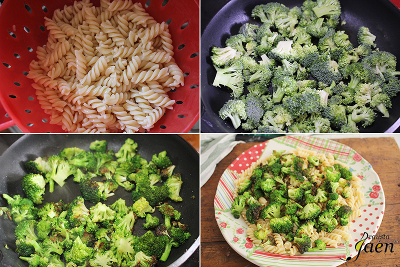 Ponemos la pasta a cocer, mientras salteamos el brócoli con un poco de aceite de oliva virgen extra en la sartén. Cuando la pasta esté escurrimos bien, añadimos el brócoli salteado, incorporamos la mezcla de frutos secos y frutas deshidratadas.