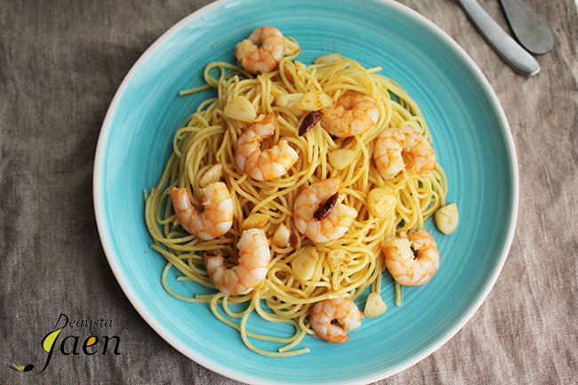 Esta semana os proponemos preparar unos riquísimos Espaguetis con langostinos y ajo con todo el sabor de Degusta Jaén. Un plato de pasta que gustará a todos, muy ligero y lleno de sabor.