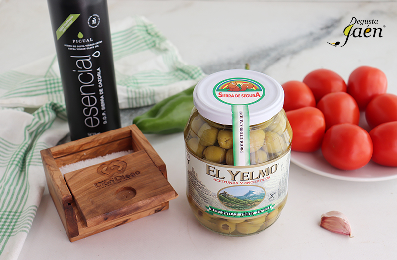 Además he utilizado Sal de Salinas Don Diego de Jaén y ajos de Ajos El Nene de Jamilena.  A continuación os explicamos Cómo hacer Gazpacho con aceitunas con todo el sabor Degusta Jaén.