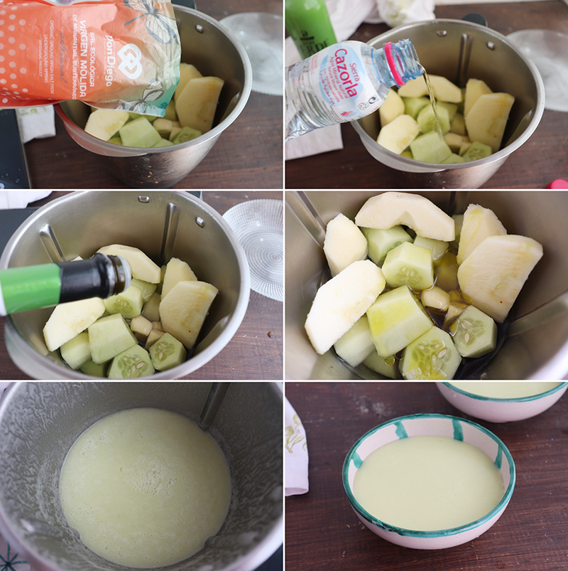 A continuación os explicamos Cómo hacer este Gazpacho de manzana y pepino con mucho sabor a Jaén.