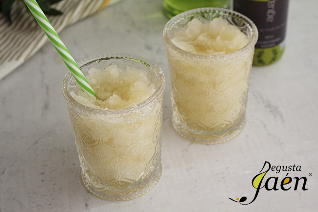 A continuación os explicamos cómo hacer Granizado de Agua de olivo y manzana Degusta Jaén.