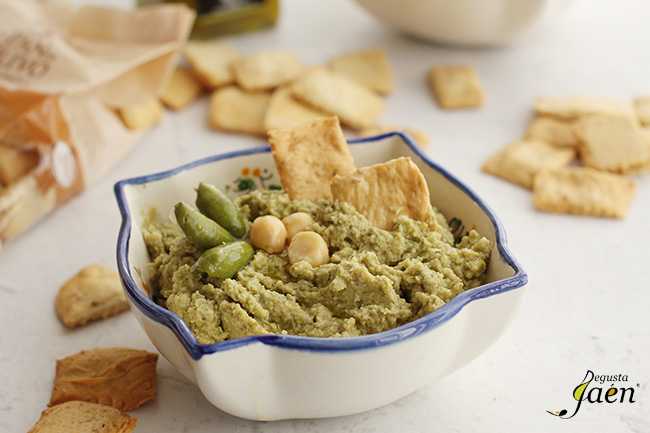 Servimos con un poco más de aceite de oliva virgen extra por encima y lo acompañamos de unas regañás para poder comerlo. Esperamos que os haya gustado este Hummus con aceitunas de cornezuelo Degusta Jaén y que os animéis a prepararlo.