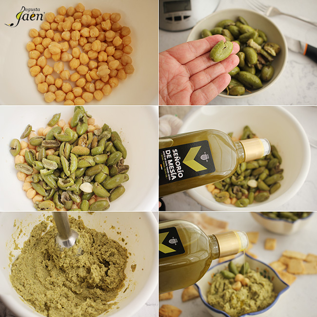 Esta semana os proponemos preparar Hummus de aceitunas, en esta ocasión con aceitunas cornezuelo. Es un aperitivo para compartir muy saludable y que es perfecto para servir en cualquier ocasión. Lo vamos a hacer con productos elaborados en la provincia de Jaén que cuentan con el distintivo Degusta Jaén Calidad, una marca que certifica al consumidor que se encuentra antes un producto de excelente calidad.