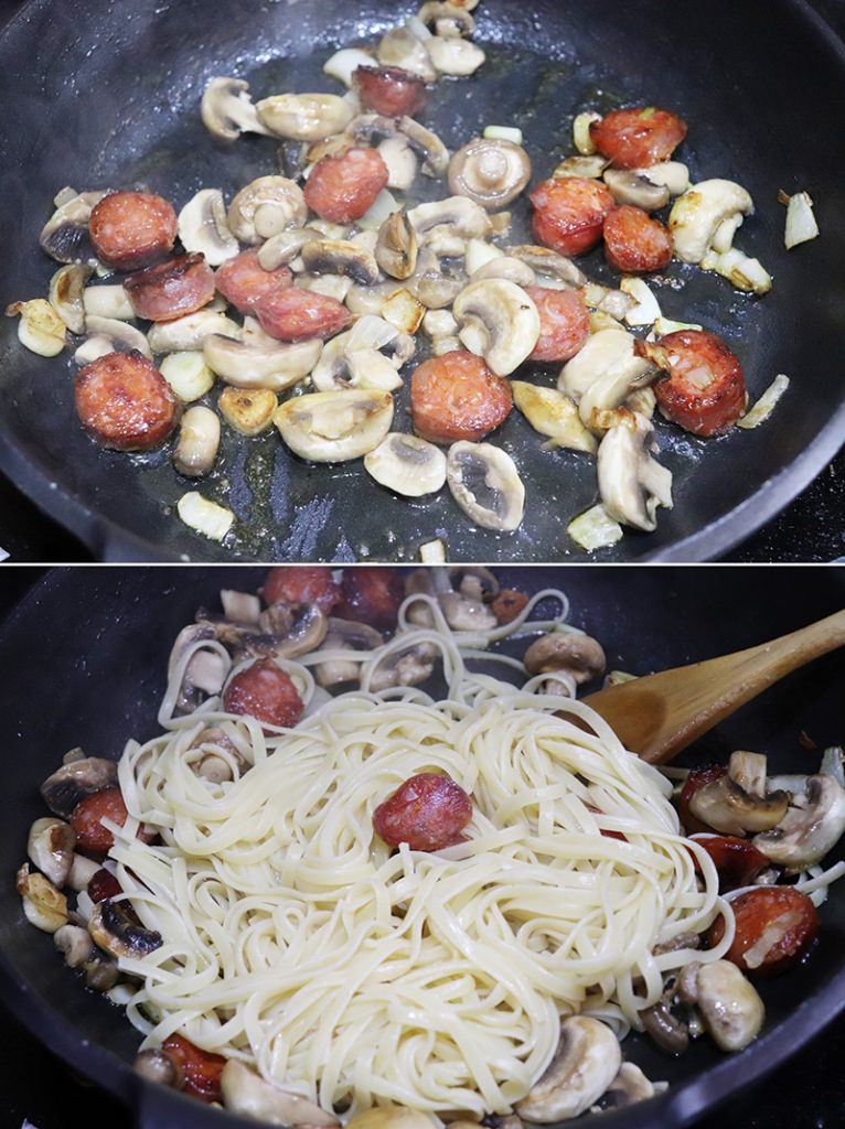 Receta de Pasta con champiñones, chorizo y queso Degusta Jaén