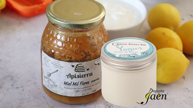 Hemos utilizado productos que han sido elaborados en la provincia de Jaén como el yogur, un yogur artesano de leche de cabra elaborado por Ibañez y Valverde de Quesos Sierra Sur en Ermita Nueva, Alcalá la Real y la miel milflores de Apisierra Miel y Chocolates de Pozo Alcón, cosechada de forma artesanal que las abejas recolectan de la flora silvestre de la Sierra de Cazorla.