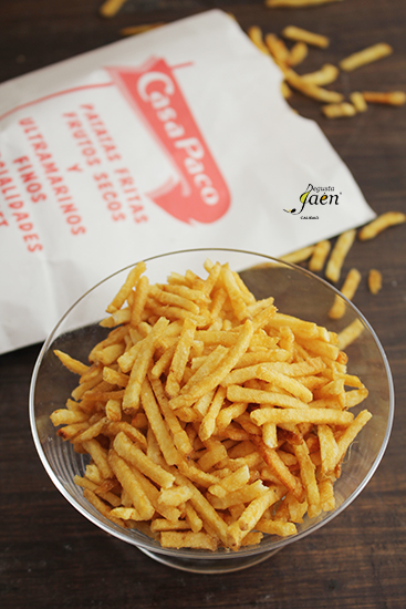 Casa Paco fue la primera fábrica de patatas fritas de Jaén, comenzaron en el año 1952 y aún hoy siguen elaborando sus patatas de manera tradicional, con los mejores ingredientes, las mejores patatas y aceite de oliva. Hoy hemos escogido sus patatas paja, unas patatas muy finas y crujientes que están riquísimas como aperitivo, como acompañamiento o como ingredientes principal como es el caso de hoy. Podéis seguirlos en redes sociales, os dejamos el enlace a su Página de Facebook y a Twitter.