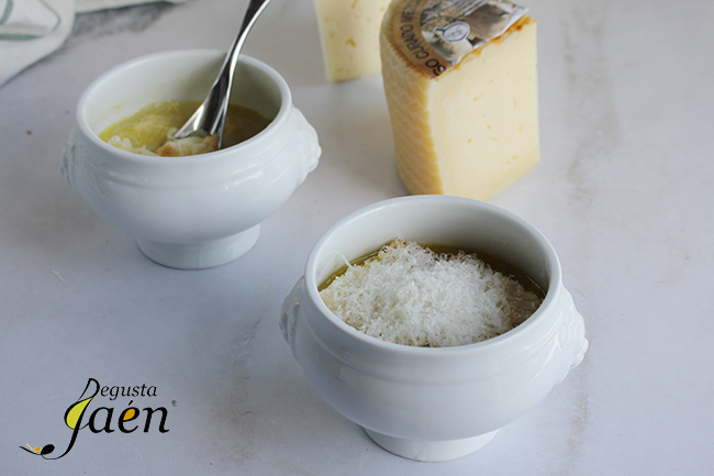 Hemos preparado esta sopa de cebolla con aceite de oliva virgen extra Señorío de las Almenas y con queso curado de Levasa, ambas empresas cuentan con la marca Degusta Jaén Calidad, un distintivo a nivel europeo que indica al consumidor que está ante un producto de excelente calidad elaborado en la provincia de Jaén.