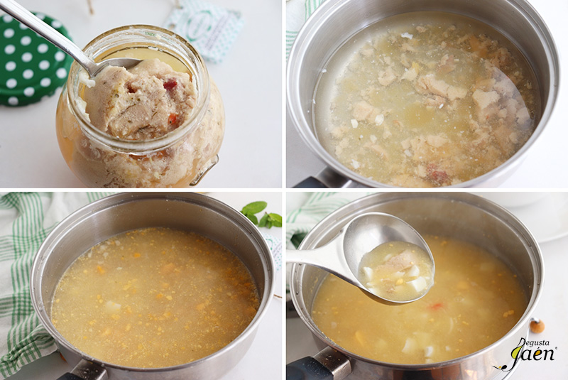 Tan sólo hay que añadirle agua y un tarro da para unas seis personas, nosotros le hemos añadido huevo cocido y fideos y hemos disfrutado de una de las mejores sopas de picadillo y hecha en sólo cinco minutos.