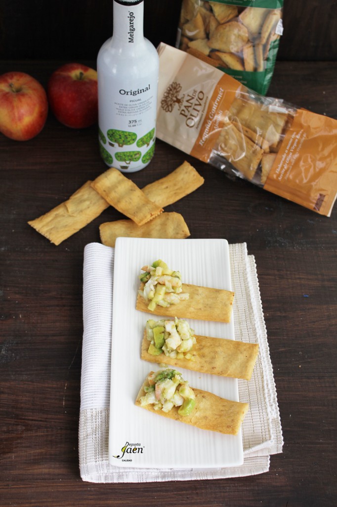 Hoy os traemos una tapa o un aperitivo muy original y sencillo de preparar, un Tartar de gambas que vamos a servir sobre pan de olivo, una mezcla de texturas y sabores que no os dejará indiferente. Utilizaremos tres excelentes productos que se elaboran en nuestra provincia, por un lado, las gambas cocidas de Mariscos Castellar, uno de los cocederos más importantes de España que se encuentra en el municipio de Santisteban del Puerto en la Comarca del Condado desde al año 1969.