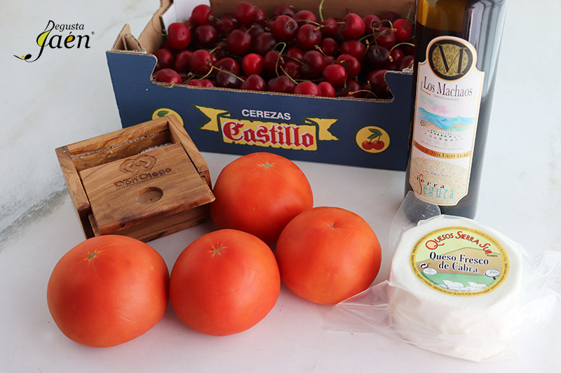 Un plato muy refrescante en el que las cerezas cobran gran protagonismo, unas cerezas que nos trajimos desde Cerezas Castillo en Castillo de Locubín en nuestra última visita (en este post os lo contamos todo), el queso es Queso fresco de cabra de la Quesería Sierra Sur de Ermita Nueva en Alcalá la Real que también visitamos esos días. La sal, una sal de manantial de Jaén, Salinas Don Diego, cuyo origen se remonta a la época romana y que ya pronto podrá ser visitado . Productos que cuentan con el distintivo Degusta Jaén Calidad, una marca a nivel nacional y europeo que certifica al consumidor que está ante un producto elaborado en la provincia de Jaén de excelente calidad.