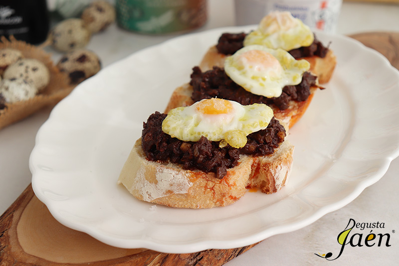 Tostas de morcilla en caldera con huevo de codorniz Degusta Jaén