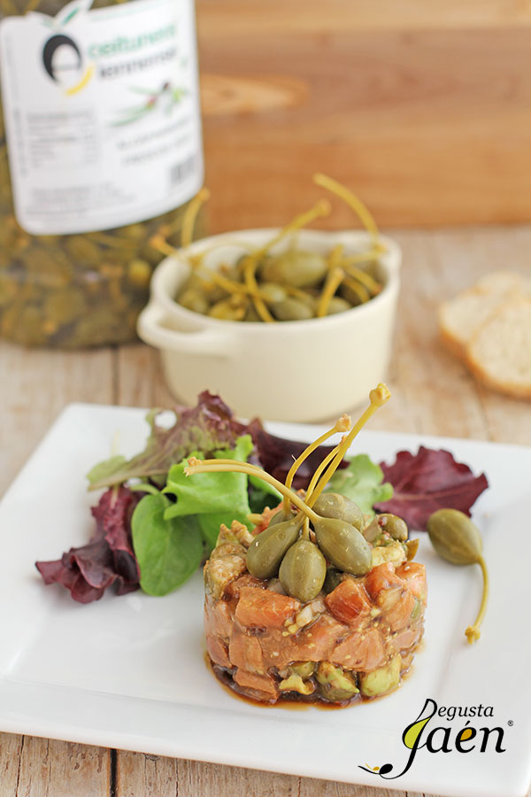 Tartar de salmón con alcaparrones