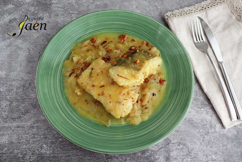 Bacalao en salsa de almendras y azafrán