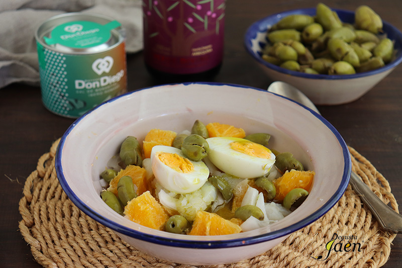 Remojón de naranja y bacalao Esta semana os proponemos un plato tradicional de la Cocina andaluza que se elabora en muchas zonas de Jaén, el remojón, una riquísima ensalada de naranja con bacalao, cebolleta, huevo cocido, aceitunas y aceite de oliva virgen extra, le pondremos sal o no dependiendo del tipo de bacalao que le[…]