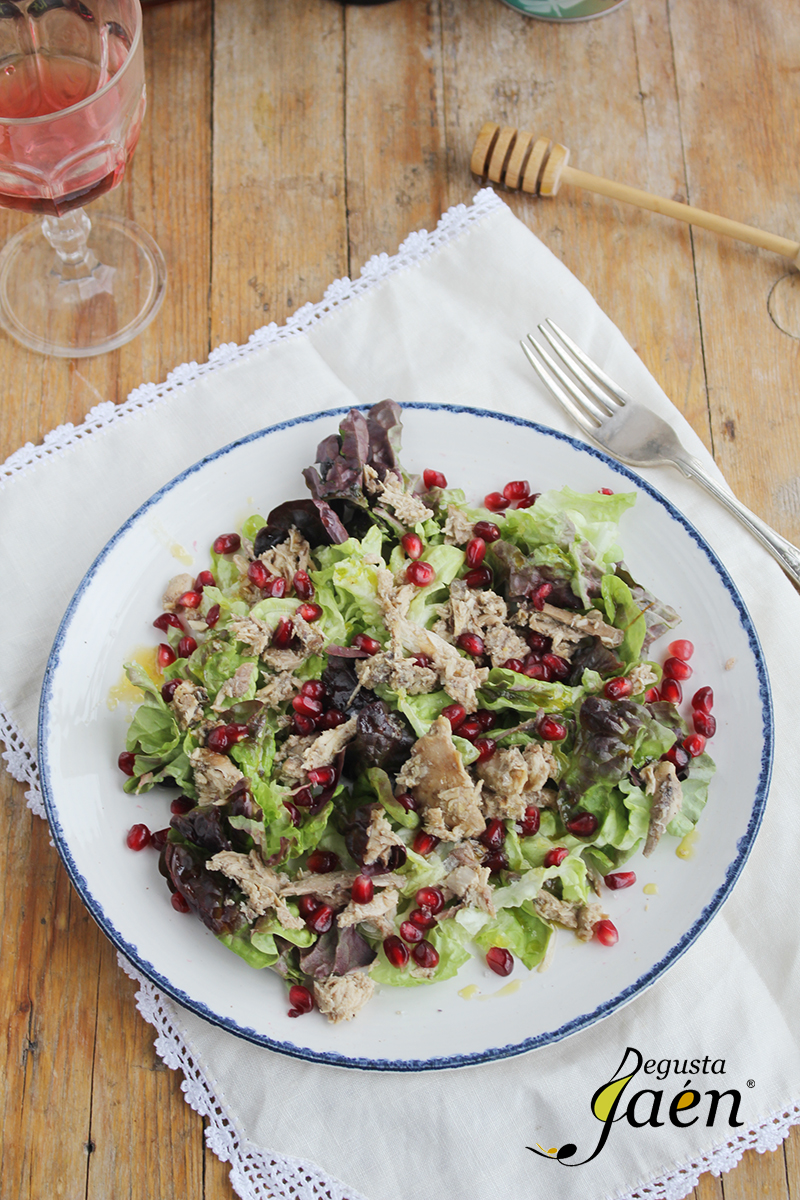 Ensalada de perdiz con granada, miel y «aove»
